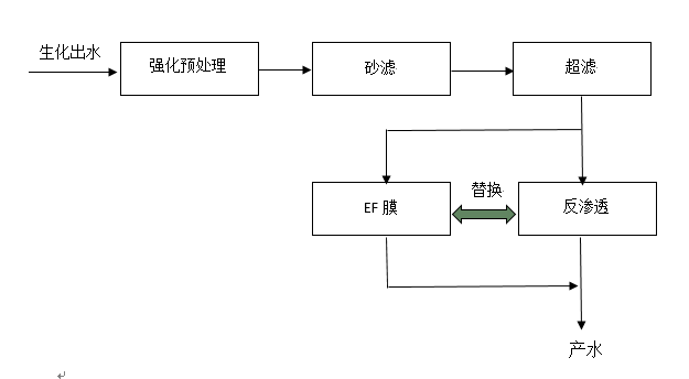 采用EF膜脫鹽率可調(diào),根據(jù)客戶不同的用水要求可以在50~95%之間調(diào)整,產(chǎn)水鹽分比反滲透稍高但不影響脫色和脫COD,回收率高,能耗低。