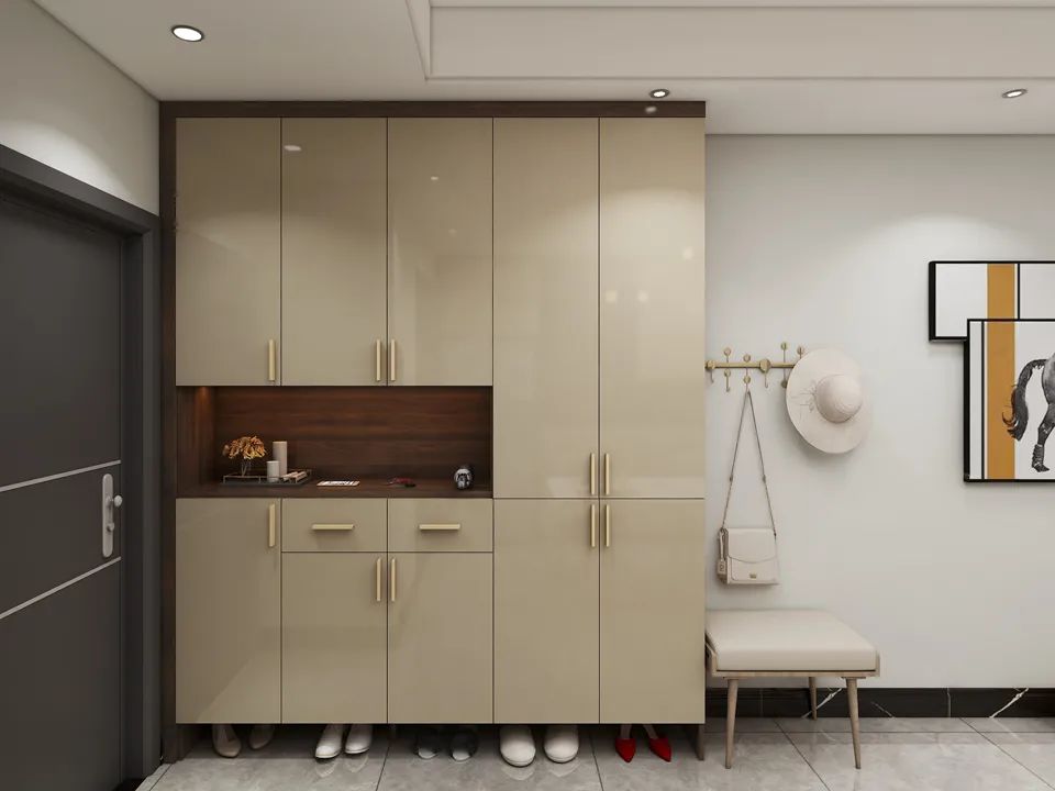 既是隔斷柜又是全鋁鞋柜,一柜到頂,大大增加了收納空間還顯得大氣簡潔。再配上換鞋凳,實(shí)用又美觀。